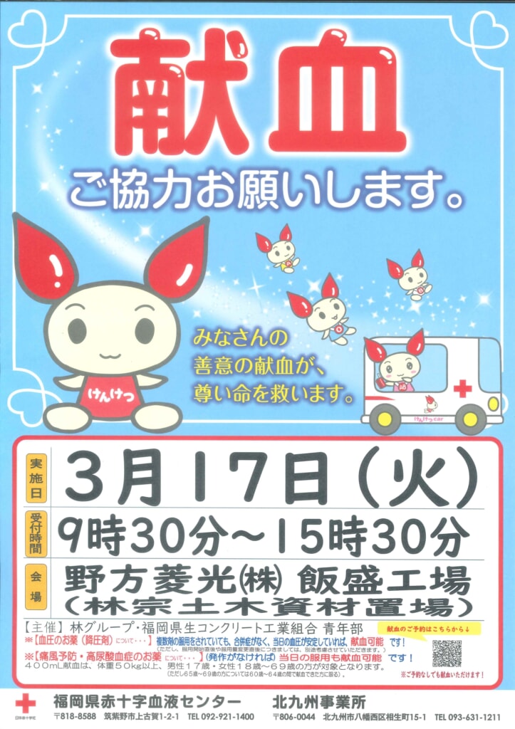 毎年「愛の献血活動」 を下記の日程で開催いたします。
